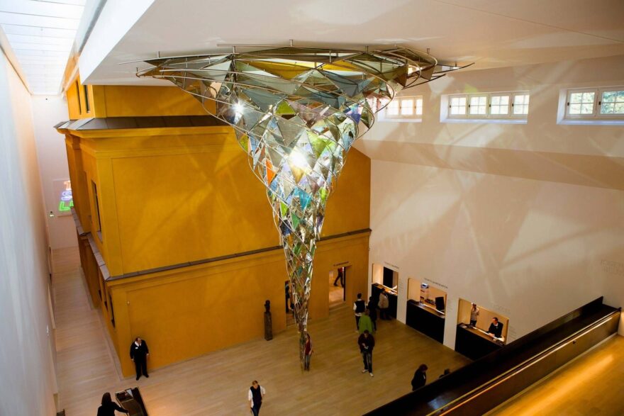The exterior, covered in 36,000 colorful ceramic rods, symbolizes the spirit of modern art: innovation, structure, and individuality.